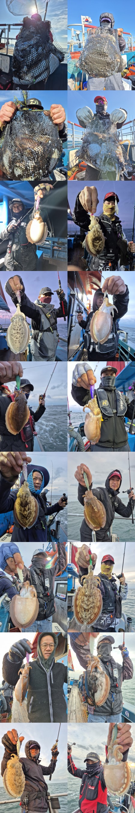 꿀렁꿀렁 너울속에서 조사님들 갑오징어를 열심히 잡아주셨네요~~