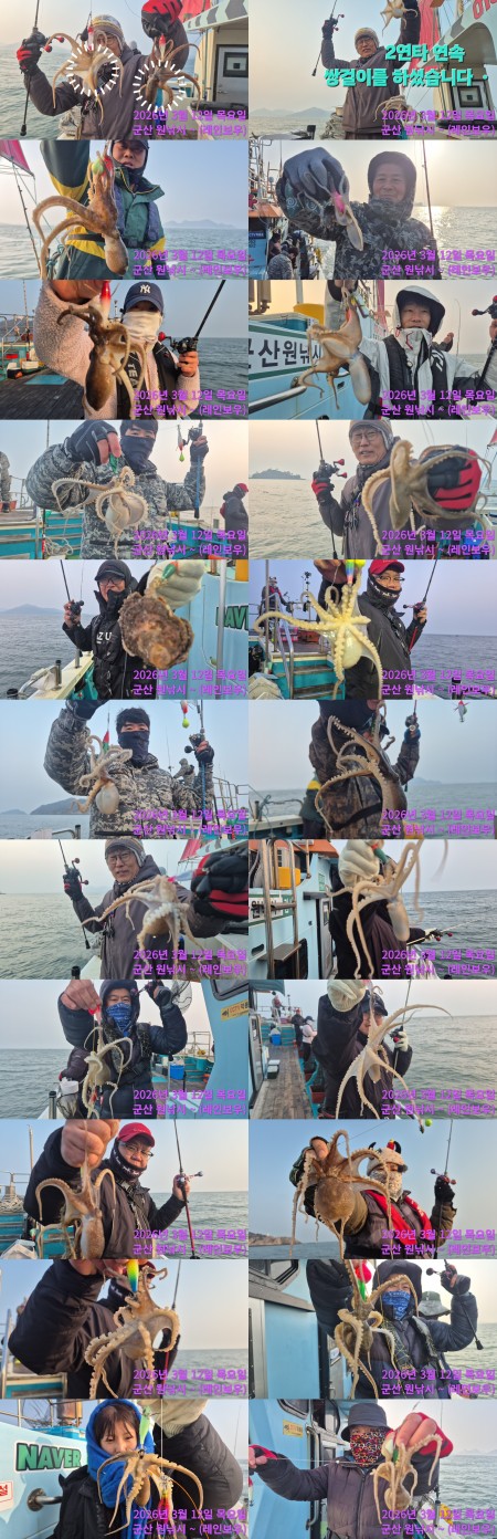 선상조황 | <레인보우호> 알쭈꾸미 탐사 마무리 굿 조황(12일)-금일 야간 우럭 자리있습니다~!