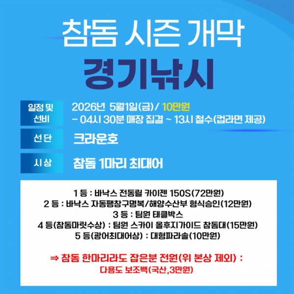 2026 참돔 첫출조 경기낚시 5월1일(금)