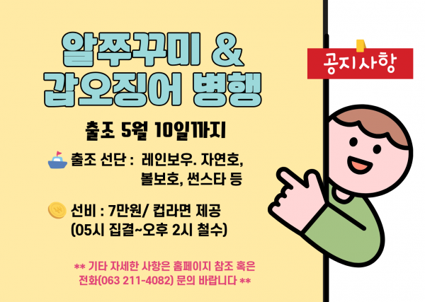 알쭈꾸미&갑오징어 병행 출조 5월 10일까지