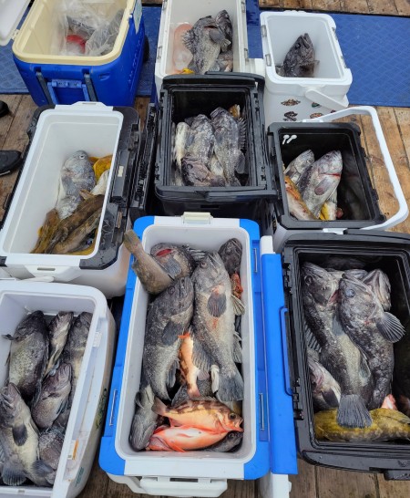 선상조황 | <뉴오리온호> 먼바다 어초침선 우럭 마무리 조황(14일)-4짜이상급 개우럭 잡고 입항했습니다.